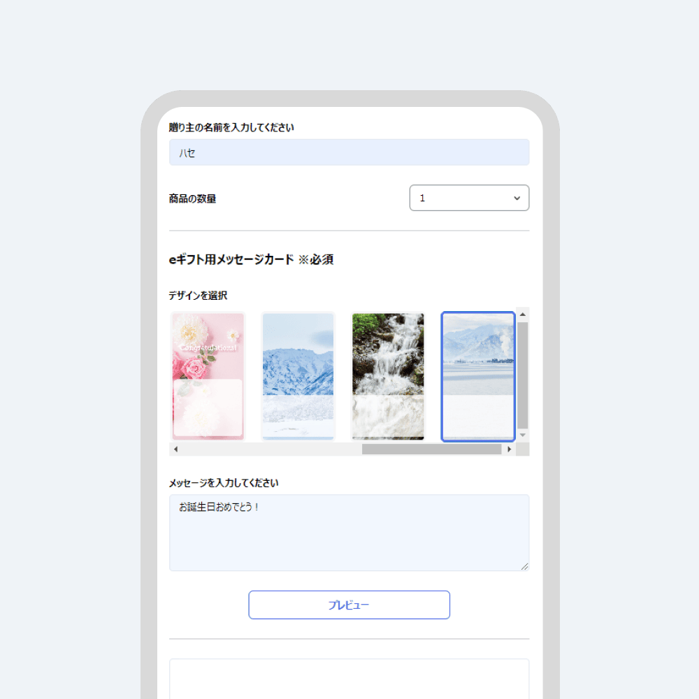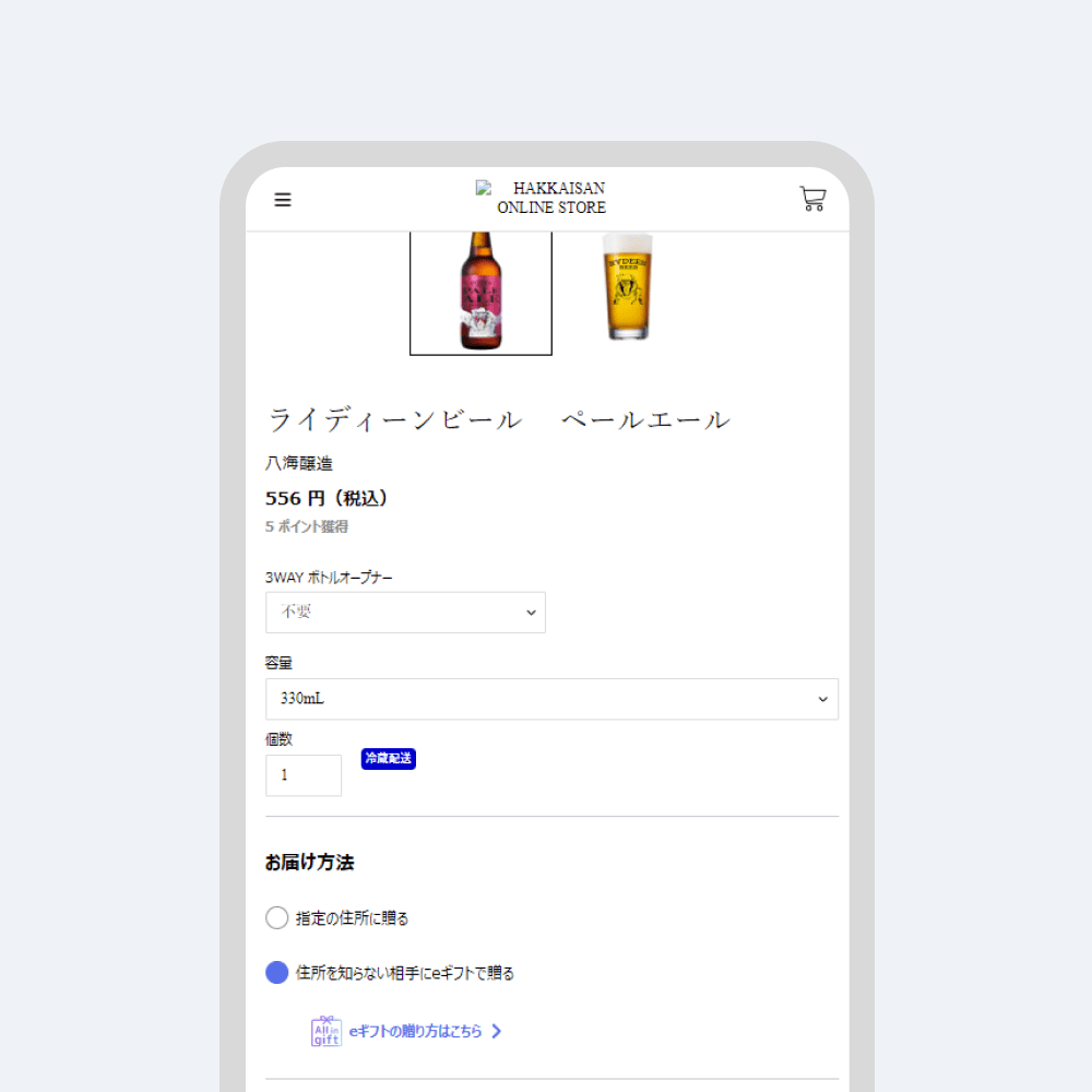 e-GIFTのご注文時には、購入者様のご住所に基づいた配送料を適用しております。