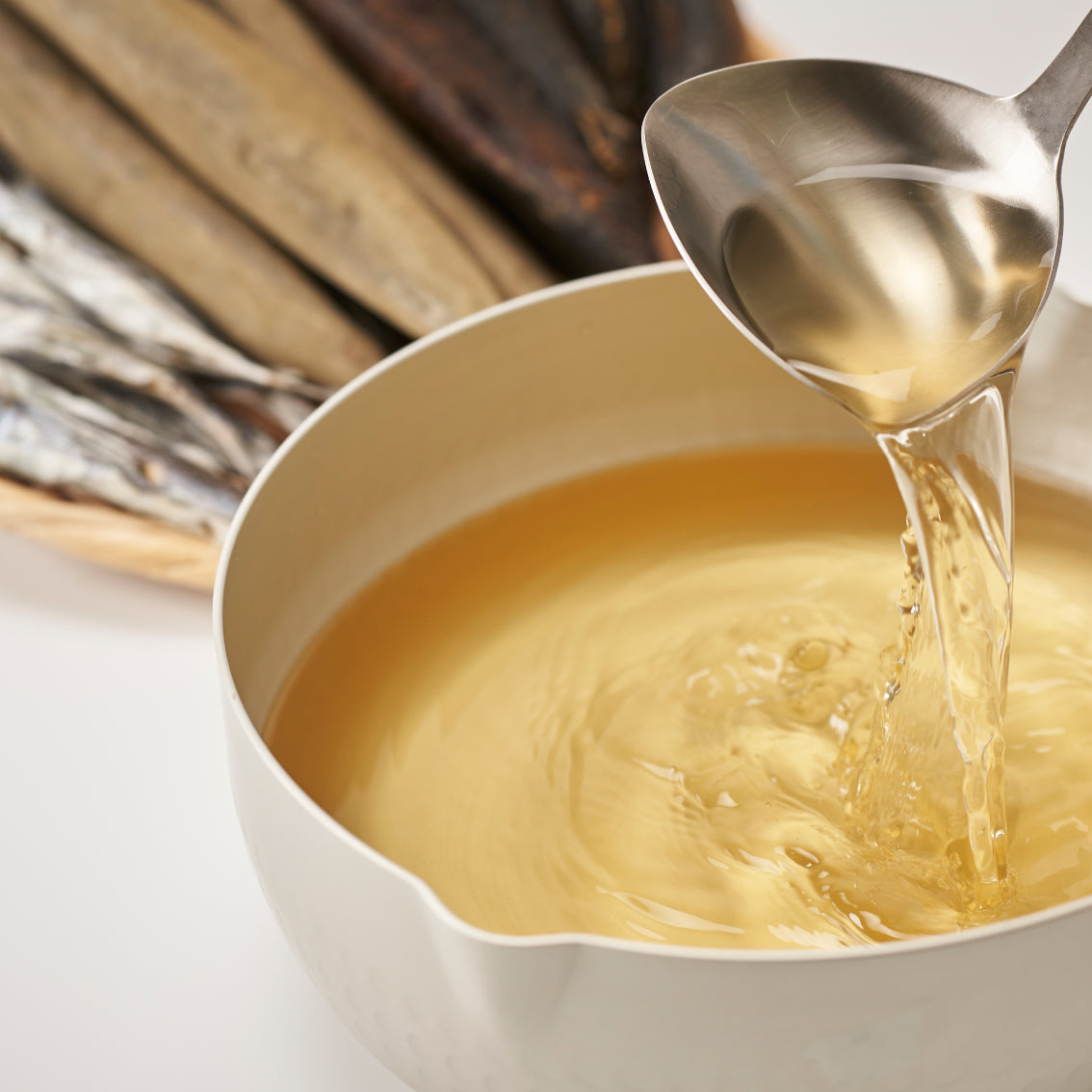 香り高い国産かつお節と北海道産真昆布を選りすぐり、うまみの相乗効果をより一層感じられるだしに仕上げました。ほんのりと下味を付けていますので、基本の合わせだしとして幅広くお使いいただけます。